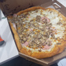 Пицца пришла в ужасном состоянии, большая часть ночинки просто уехала, больше заказывать у вас не буду